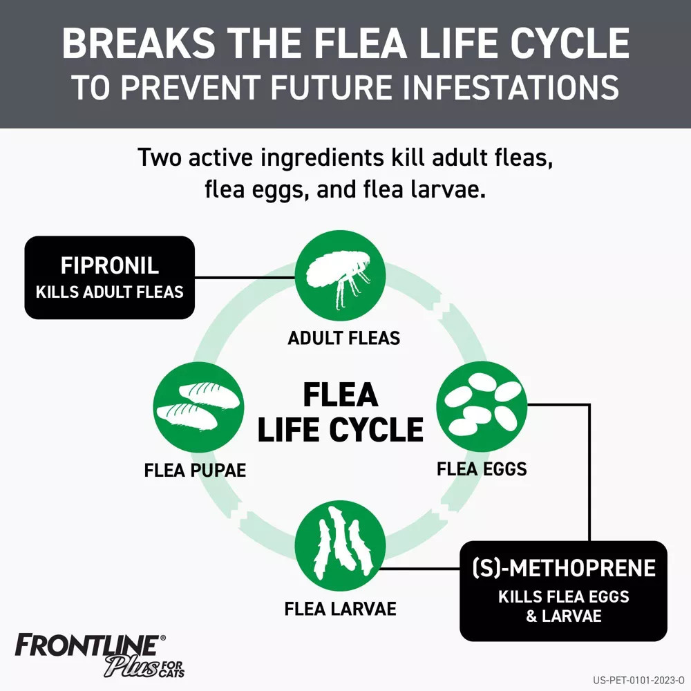 Frontline Plus for Cats provides a fast-acting, topical solution designed to protect cats and kittens from fleas, ticks, and lice. It's suitable for use on kittens from 8 weeks of age and is safe for breeding, pregnant, and lactating cats.